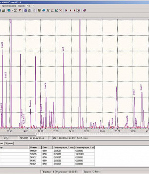 - Отображение на экране компьютера информации о результатах различных этапов обработки выходных сигналов детекторов, в т. ч., параметров созданных методик и компонентов, параметров диагностического контроля, результатов статистической обработки и т. д.