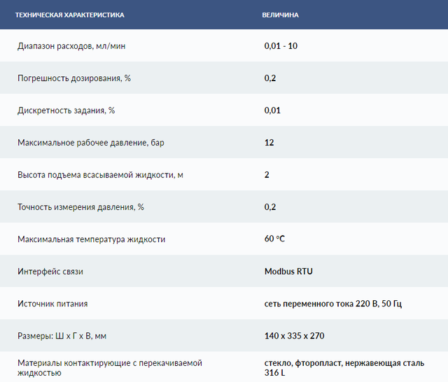 Насос шприцевой высокого давления (НШВД-1) с непрерывным высокостабильным потоком жидкости в широком диапазоне расходов 0,01-10мл/мин. с функциями введения корректирующего коэффициента после калибровки, задания объема или времени перекачивания, отображение количества перекачанного, временной приостановки перекачивания с автоматическим возобновлением, возможность корректировки величин расхода и объема перекачиваемой жидкости в процессе работы без остановки, автоматического отключения насоса при превышении заданного максимального давления, дистанционного управления, компенсация изменения массового расхода перекачиваемой насосом жидкости при изменении ее температуры.