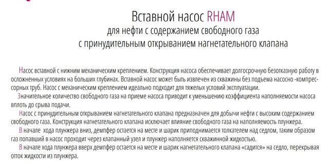 Вставной насос RHAM для нефти с содержанием свободного газа с принудительным открыванием нагнетательногоВ наличии